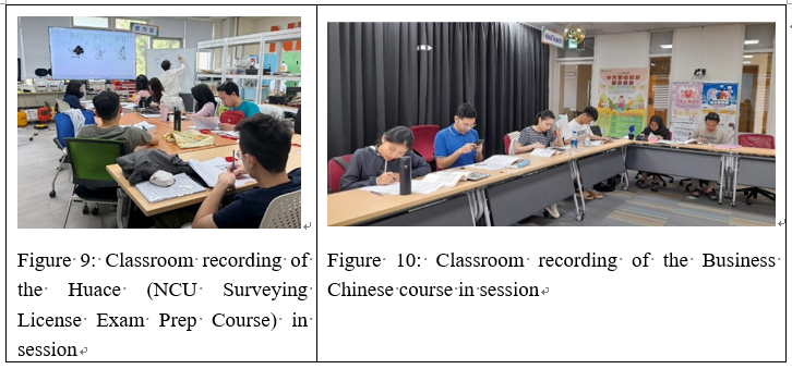In language support, seven themed Chinese-language activities (including TOCFL preparation and cultural experience courses, Figures 9–10) attracted 325 participants cumulatively. English training (TOEIC and speaking classes) involved 28 administrative staff. Over 10 career workshops, enterprise visits, and cross-cultural events were held in 2025. Campus bilingualization included updating administrative building signage and renovating 144 bilingual directional signs, significantly enhancing readability and friendliness for international faculty and students.