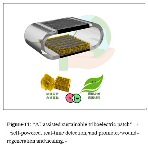 Outstanding achievements in smart medical devices and clinical applications include an AI-assisted sustainable triboelectric patch (Figure 11) with self-powering, real-time monitoring, and wound healing promotion capabilities, published in Nano Energy. The team also established high-density body-surface potential reconstruction technology for 3D cardiac modeling, achieving radiation-free coronary angiography and lesion localization.