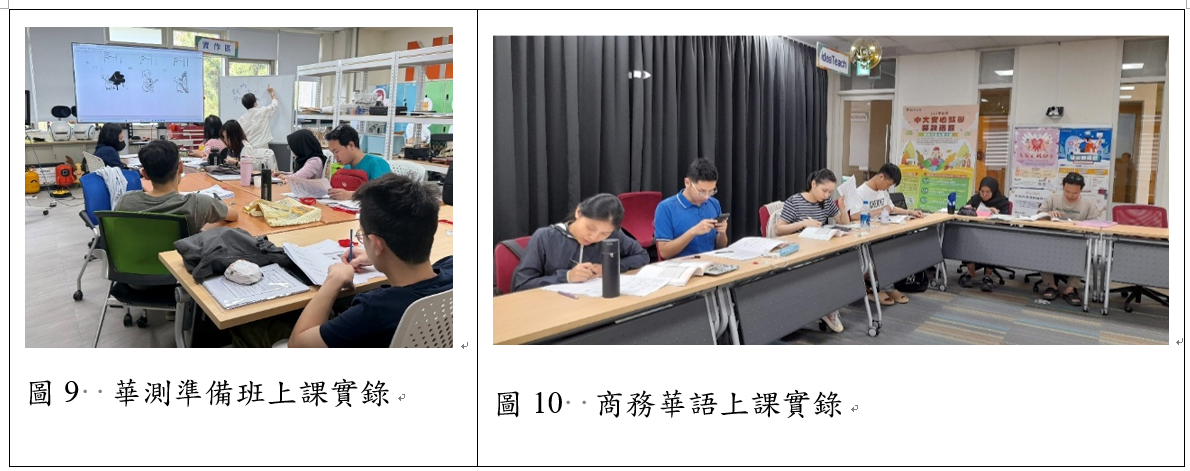 本校以「學生與行政人員友善校園」為核心,建構涵蓋語言支持、文化適應、職涯發展及校園環境優化的完整系統,全面提升境外生與行政同仁於校園中的學習與生活經驗。在語言支持方面,開設多元華語課程(含華語文測驗班、文化體驗課程等,圖9、圖10)共7項主題活動,參與累計325人次,協助境外生提升語言能力與文化理解,進一步促進其留台發展意願。同時推動英語能力培訓,辦理多益綜合班及英語口說班,共有教職員28人參與,藉此強化行政人員語言能力,進而提升整體國際互動品質。在交流支持方面,透過多場跨文化活動、職涯及諮商輔導講座,促進本籍生與境外生互動,提升境外生文化適應力。114年度辦理超過10場職涯講座、工作坊與企業參訪,內容涵蓋面試技巧、留臺政策說明會及產業媒合,協助學生掌握就業趨勢並提升留臺意願。在優化校園雙語環境方面,完成行政大樓雙語樓層指引更新,並推動144面校園雙語導引立牌整建,全面提升外籍師生校園可讀性與友善度。整體而言,本年度以量化成果展現國際處在語言、生活、職涯與校園環境四大面向的系統性支持,持續與校務發展計畫目標接軌,奠定更完善的國際友善校園基礎。